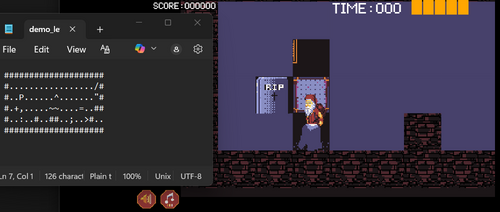 Each symbol in the file maps to a tile or object in the game, giving me a clean, controllable way to build levels.